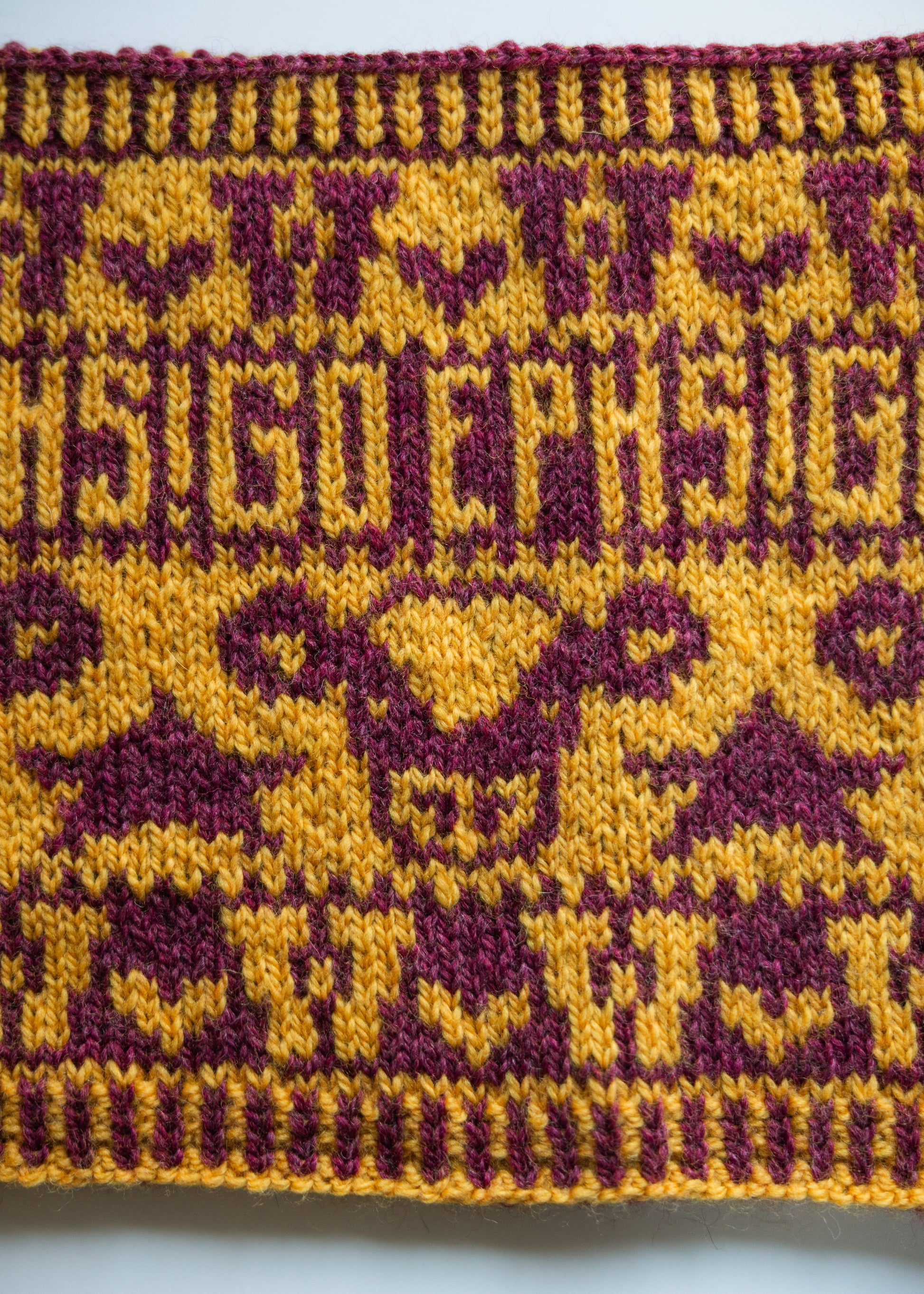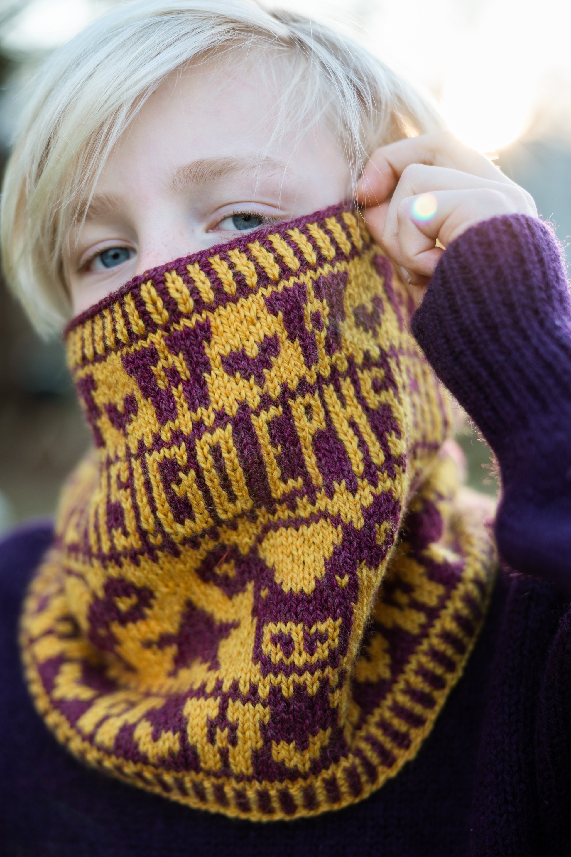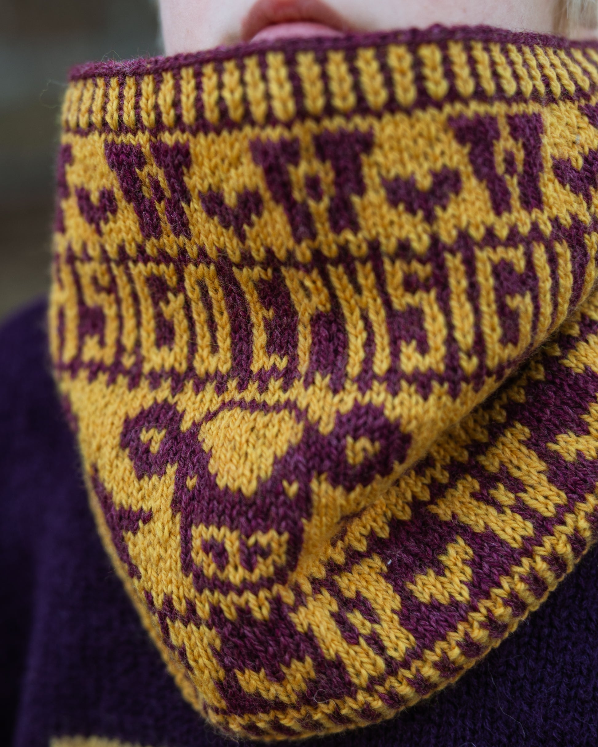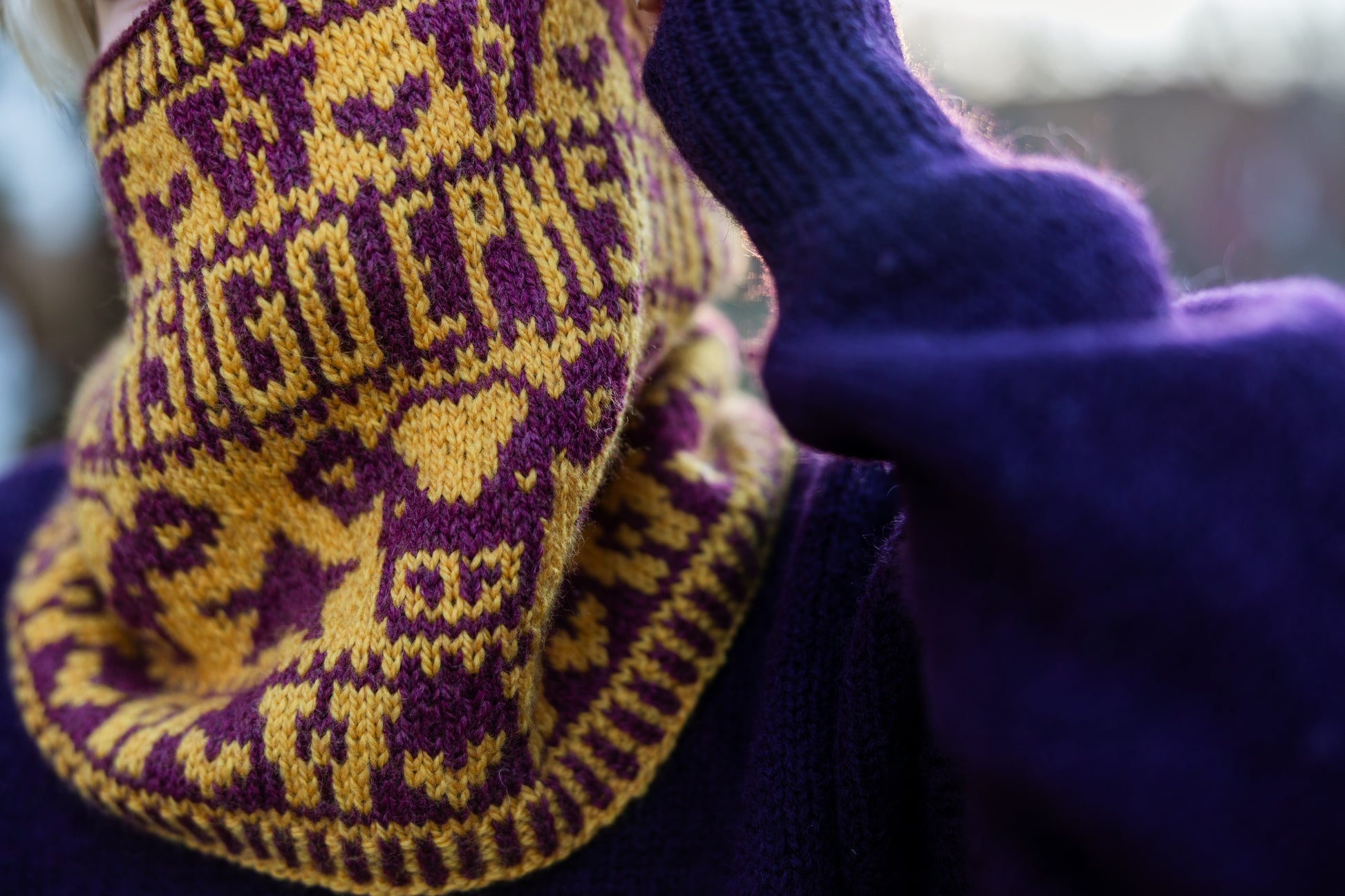 Suggested yarn: DK or Worsted weight yarn in Purple & Gold